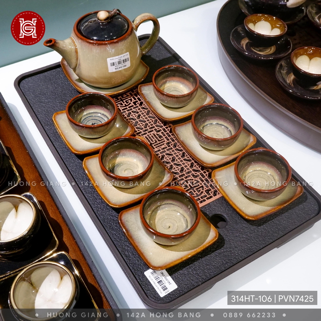 Bộ ấm chén 3 chân gấm lòng xoáy